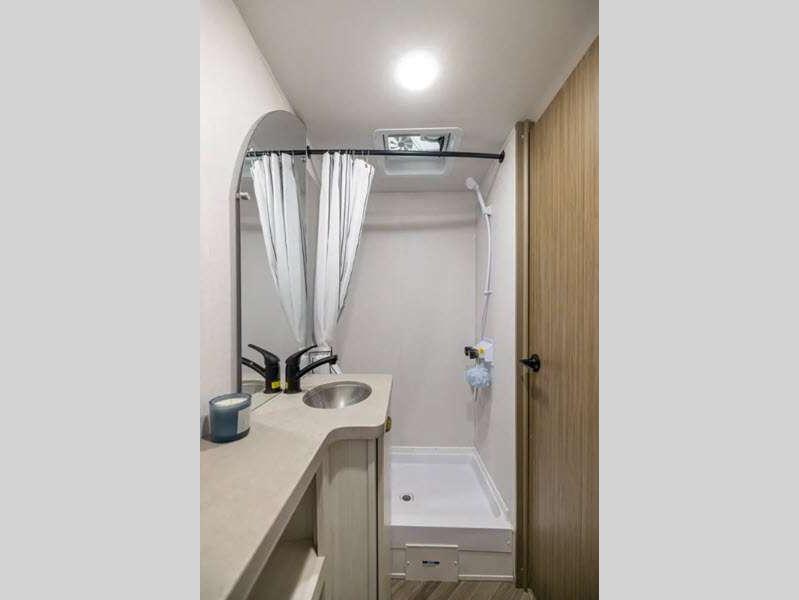 Sleeps 4 Slides 1 Length 23 ft 3 in Ext Width 7 ft 6 in Ext Height 10 ft 6 in Hitch Weight 450 lbs GVWR 5550 lbs Dry Weight 4064 lbs Cargo Capacity 1486 lbs Fresh Water Capacity 39 gals Grey Water Capacity 30 gals Black Water Capacity 30 gals Available Beds Queen Refrigerator Type 12V Cooktop Burners 2 Number of Awnings 1 LP Tank Capacity 20 lbs Water Heater Type On Demand Tankless Awning Info Power w/LED Light Strip Axle Count 1 Number of LP Tanks 1 Shower Type Standard Similar Floorplans