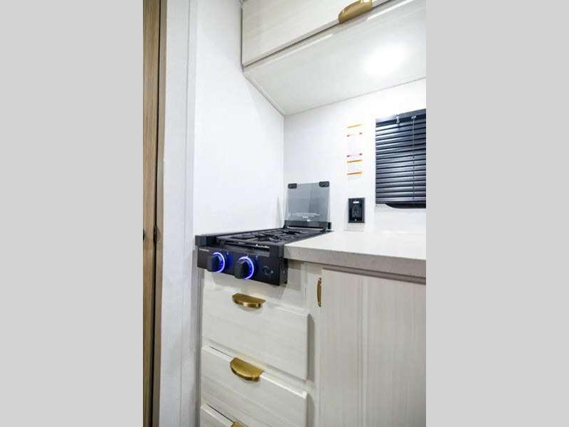 Sleeps 2 Slides 1 Length 26 ft 1 in Ext Width 8 ft Ext Height 11 ft 2 in Hitch Weight 755 lbs GVWR 7755 lbs Dry Weight 5628 lbs Cargo Capacity 2127 lbs Fresh Water Capacity 54 gals Grey Water Capacity 80 gals Black Water Capacity 40 gals Available Beds King Refrigerator Type 12V Cooktop Burners 3 Number of Awnings 1 LP Tank Capacity 20 lbs Water Heater Type On Demand Tankless Awning Info 18' Power w/LED Light Strip Axle Count 2 Shower Type Standard Similar Floorplans