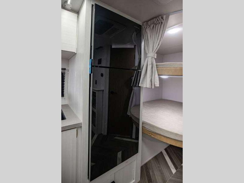 Sleeps 8 Slides 1 Length 23 ft 2 in Ext Width 7 ft 6 in Ext Height 10 ft 2 in Int Height 0 ft Hitch Weight 555 lbs GVWR 5655 lbs Dry Weight 4269 lbs Cargo Capacity 1386 lbs Fresh Water Capacity 39 gals Grey Water Capacity 30 gals Black Water Capacity 30 gals Number Of Bunks 2 Available Beds Murphy Refrigerator Type 12V Cooktop Burners 2 Shower Size 36" x 24" Number of Awnings 1 LP Tank Capacity 20 lbs Water Heater Type On Demand Tankless Cargo Deck Size 0 ft Awning Info 14' Power w/LED Light Strip Axle Count 1 Number of LP Tanks 1 Shower Type Standard Similar Floorplans