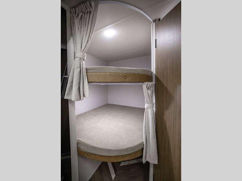 Sleeps 8 Slides 1 Length 32 ft 10 in Ext Width 8 ft Ext Height 11 ft Int Height 0 ft Hitch Weight 715 lbs GVWR 7715 lbs Dry Weight 6578 lbs Cargo Capacity 1137 lbs Fresh Water Capacity 54 gals Grey Water Capacity 40 gals Black Water Capacity 40 gals Number Of Bunks 2 Available Beds King Refrigerator Type 12V Shower Size 36" x 30" Number of Awnings 1 LP Tank Capacity 20 lbs Water Heater Type Tankless On Demand Cargo Deck Size 0 ft Awning Info Power w/LED Light Strip Axle Count 2 Shower Type Standard Similar Floorplans