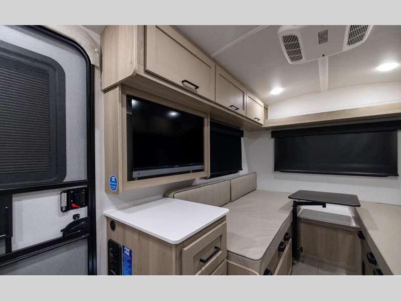 Sleeps 3 Length 14 ft 11 in Ext Width 7 ft 4 in Ext Height 7 ft 3 in Hitch Weight 290 lbs Dry Weight 2243 lbs Cargo Capacity 687 lbs Fresh Water Capacity 20 gals Grey Water Capacity 6 gals Tire Size 15" Furnace BTU 20000 btu Number Of Bunks 1 Refrigerator Type 12V Cooktop Burners 3 Number of Awnings 1 LP Tank Capacity 20 lbs Water Heater Type Gas/Electric Quick Recovery AC BTU 13500 btu TV Info 12V TV Awning Info 10' Power Axle Count 1 Number of LP Tanks 2 Shower Type N/A Similar Floorplans
