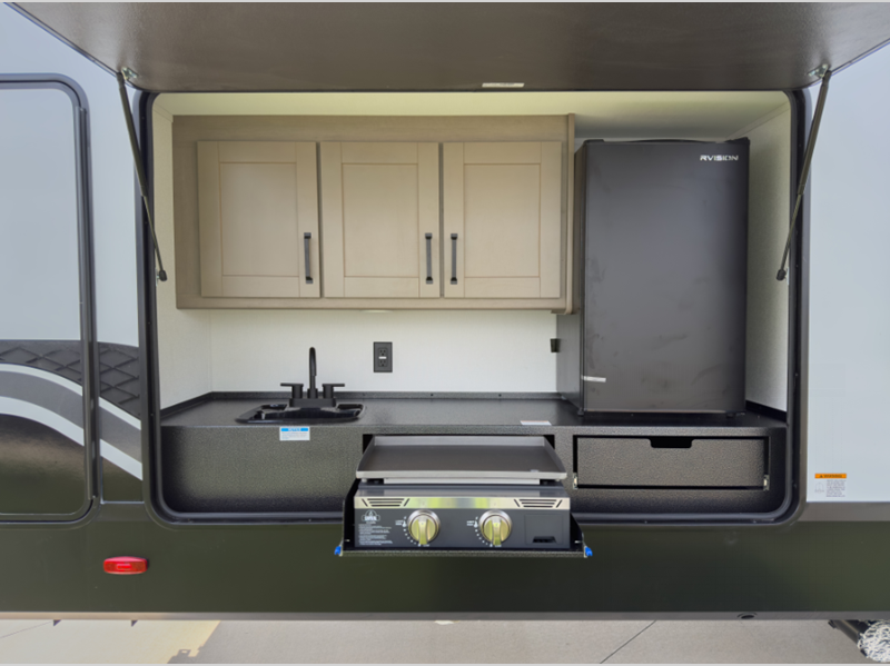You will be able to enjoy your fifth wheel for years to come since there are full laminated walls, a double insulated roof, front cap, and floor, plus gel coated exterior sidewalls. The Arctic 4-Seasons Protection Package will allow you to camp during the colder months or even go full-time, and the Solar Package will provide off-grid capabilities! There are two additional packages; the Peace of Mind Package and Ultimate Power Package that include residential cabinetry and pleated shades, a "one-touch" electric awning with LED lights, and a Compass Connect system to stay informed on all your units functions!