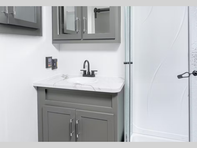Sleeps 5 Slides 1 Length 28 ft 8 in Ext Height 11 ft 1 in Interior Color Tranquil Timber Hitch Weight 735 lbs Dry Weight 5970 lbs Cargo Capacity 1630 lbs Fresh Water Capacity 54 gals Grey Water Capacity 76 gals Black Water Capacity 38 gals Tire Size ST205/75R14D Furnace BTU 30000 btu Available Beds Queen Refrigerator Type 12V Double Door Refrigerator Size 10 cu ft Convection Cooking Yes Cooktop Burners 3 Number of Awnings 1 LP Tank Capacity 20 lbs Water Heater Type Girard Tankless AC BTU 13500 btu TV Info 12V Smart TV Awning Info 19' Axle Count 2 Number of LP Tanks 2 Shower Type Standard Similar Floorplans