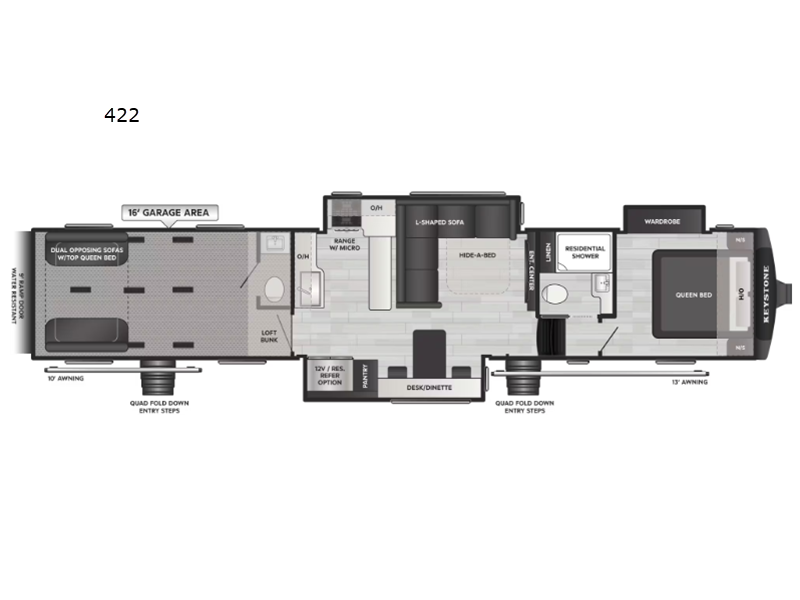 Keystone Fuzion Impact Edition LT Series toy hauler 422 highlights: